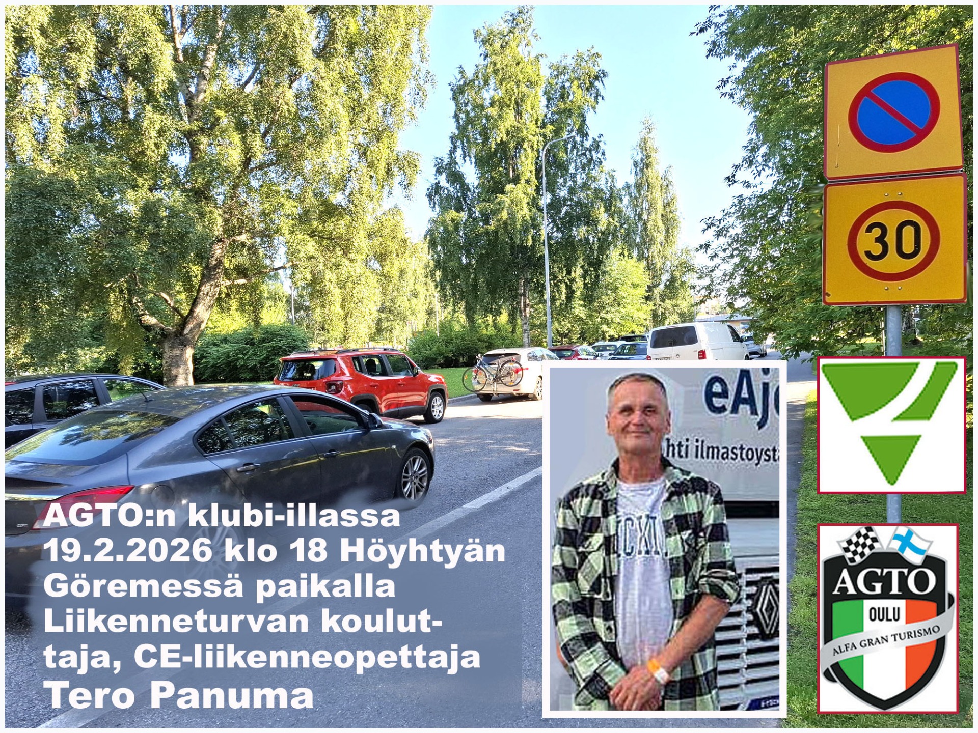 Useimmat Pohjois-Suomen Alfistit ovat ajaneet ajokortin yli 25 vuotta sitten. Osa on saanut ajoluvat jopa 50 vuotta sitten. Vaikka ajokokemusta on jokaisella karttunut, liikennesääntöjen päivitys on useimmilta unohtunut. Hallitsemmeko uusimmat liikennemerkit, osaammeko ryhmittyä kaupunkiliikenteessä oikein ja olemmeko pitäneet huolta terveydestämme?